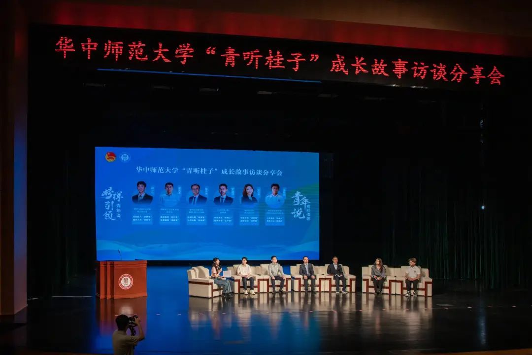 以青年说会青年友,以青年友说青年事。“青听桂子”成长故事访谈分享会上,优秀教师代表、中国农村研究院张大维,优秀辅导员代表、物理科学与技术学院姜春勇、“十佳”班主任代表、公共管理学院王超群,优秀学生代表、中国大学生“自强之星”胡一心、“校长奖”获得者李羽涵,优秀集体代表、恽代英菁英学校团支部代表王梓桐与现场师生分享了他们关于专业学习、成长就业、志愿服务、国际交流、集体建设的青春故事。